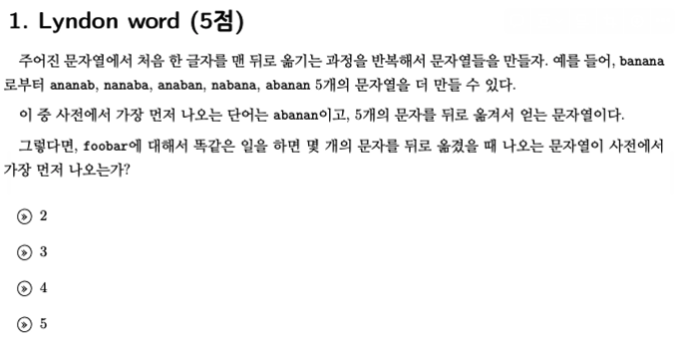 banana의 경우는 a가 3개 있기 때문에 다른 문자의 위치에 따라 사전순으로 배열할 때 신경써 주어야 합니다. 하지만 foobar 의 경우 a가 하나 있기 때문에 a만 맨 앞으로 이동시켜주면 됩니다. 따라서 arfoob가 사전에서 가장 먼저 나오고 이는 4개의 문자를 뒤로 옮겨주면 됩니다.