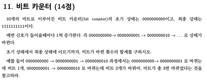 어렴풋이 규칙이 보입니다. 먼저 0에서 1까지는 1번 바뀝니다. 0에서 2인 10까지는 총 3번 바뀝니다. 0에서 4인 100까지는 7번 바뀝니다. 16인 1000까지는 15번 바뀝니다. 즉 2 ** n 까지 바뀌는 값은 2 ** n - 1번 바뀌는 것을 알 수 있습니다.