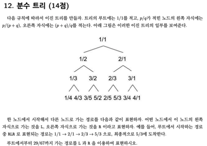 처음부터 진행해서 29/67을 찾는 것은 힘듭니다. 거꾸로 찾아가야 쉽게 찾을 수 있습니다. 왼쪽으로 갈 때에는 앞의 숫자가 작고, 오른쪽으로 갈 때에는 뒤의 숫자가 작은 것을 이용해서 문제를 해결할 수 있습니다.