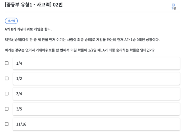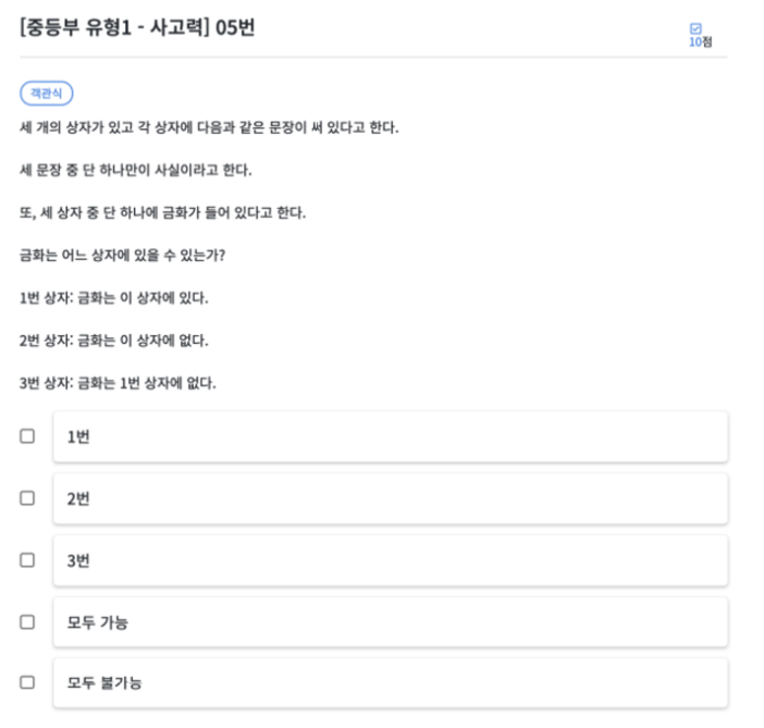 초등부 5번과 같은 문제 입니다. 아래 링크를 통해 초등부 5번 확인 바랍니다.