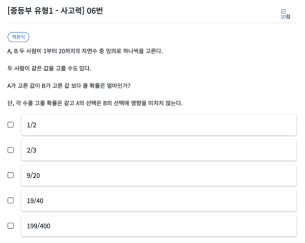 초등부 7번과 같습니다. 7번 확인 바랍니다.