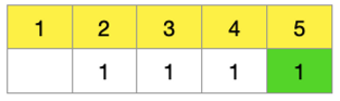 4보다 큰 숫자의 구간 [5 : 5]의 구간 합은 1입니다. 지금까지 역순의 순서쌍의 총 합은 2가 됩니다. 마지막으로 1을 업데이트 합니다.