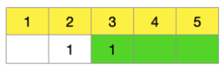 전체 숫자의 범위 1부터 5까지 리스트에 숫자들을 업데이트하면서 자신보다 큰 구간의 합을 구해줍니다. 세그먼트 트리에 첫 번째 숫자 3을 업데이트 합니다. 그리고 3보다 큰 숫자들의 개수를 확인해 봅니다. [4 : 5] 구간의 합은 0입니다. 다음으로 두 번째 숫자인 2를 업데이트 합니다.