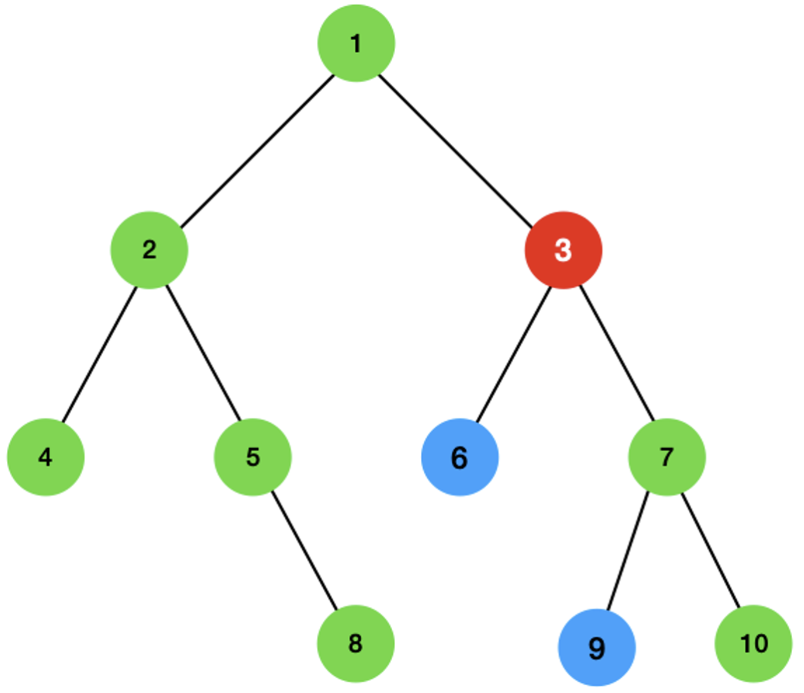 위와 같은 그래프가 있을 때 6번 정점과 9번 정점의 최소 공통 조상은 3번 입니다. 우리는 눈으로 바로 3번이 최소 공통 조상이라는 것을 찾을 수 있지만 알고리즘으로 이를 찾으려면 쉽지 않습니다. 어떻게 찾을 수 있을지 한번 생각해 보고 다음을 읽어보시기 바랍니다.