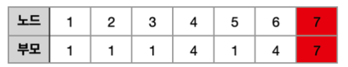 6의 트리부모는 4 입니다. 4는 S에 포함되어 있기 때문에 Union 합니다. 그리고 7은 S에 없기 때문에 사용하지 않습니다.