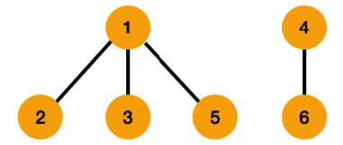 유니온 파인드를 통해 위와 같은 관계를 구할 수 있습니다. 1의 자식 노드들은 총 4개, 4의 자식 노드들은 2개입니다. 4 * (4-1) / 2를 통해 6을 구할 수 있고, 2 * (2-1) / 2를 통해 1을 구할 수 있습니다. 노드들을 통해 구한 값의 합인 7이 정답이 됩니다.
