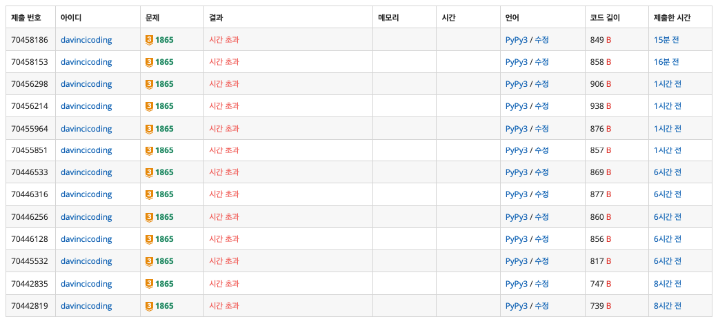 이것이 시간 초과를 뚫어볼려고 이리저리 시도한 영광의 상처 입니다. 정상적인 플로이드 워셜 풀이는 안되게 막아놓은것 같습니다.