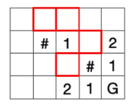 바로 2의 위치는 무조건 피해야 하는 자리 입니다. 2의 위치에서는 갈 수 있는 곳이 한 군데이기 때문에 무조건 1로 갈 수밖에 없고, 1로 가게되면 선공이 다음 턴에 G에 도달하여 승리하게 됩니다. 그럼 빨간색 표시된 자리는 왜 안될까요? 빨간색 표시된 자리 역시 1로 갈 수 있어서 가면 안될것 같습니다. 하지만 빨간색 자리에 있다면 1이 있는 곳이 아닌 다른 곳으로 가서 선공의 승리를 가져가지 못하게 할 수 있습니다. 따라서 2번 위치만 가능합니다.