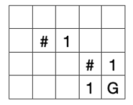 1이 있는 위치에서 선공을 한다면 무조건 이길 수 있습니다. 왜냐하면 우리가 갈 수 있는 위치인 아래, 오른쪽 K만큼 대각선에 골(G)이 위치하여 한 턴안에 바로 G로 갈 수 있기 때문 입니다.