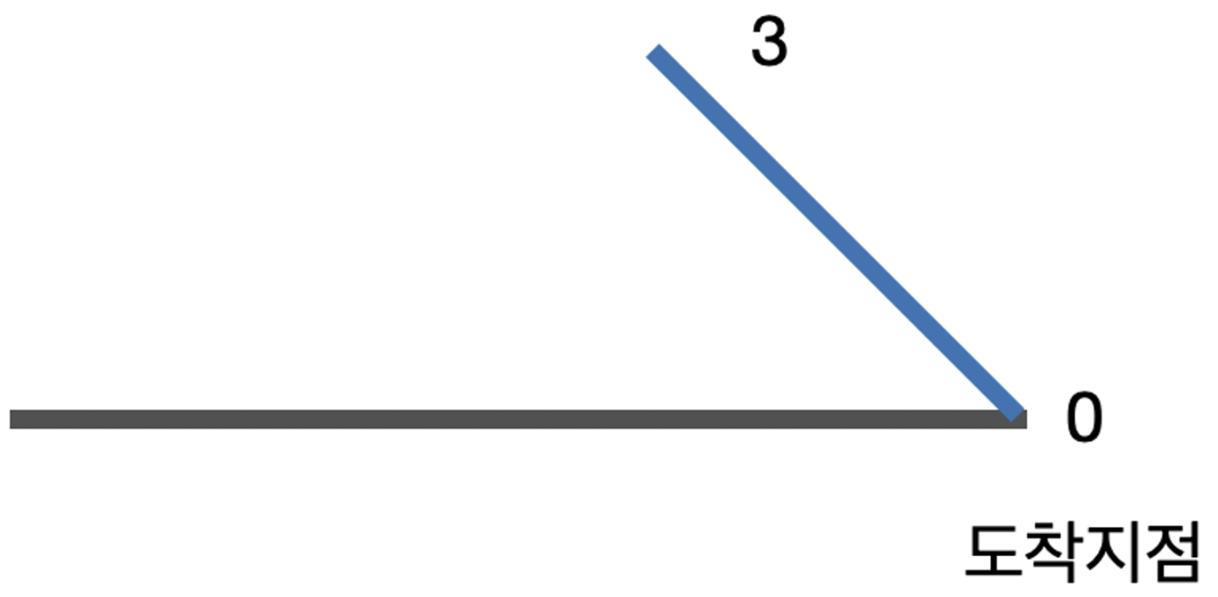 마지막에서 네 번째 지점이 몇이 될 수 있을지를 생각해 보겠습니다. 먼저 이전과 같이 4이상의 큰 수라면 이전과 똑같이 4가 될 것입니다. 하지만 이번에는 3일 수도 있습니다. 그럼 똑같이 3으로 유지하면 됩니다. 문제는 갑자기 작아지는 1일 경우를 생각해 보겠습니다. 마지막의 네 번째가 1이라면 문제가 생길까요? 문제가 생길것 같아 보이지만 전혀 문제가 생기지 않습니다. 왜냐하면 속력을 올리는 것에는 제한이 없기 때문 입니다. 1에서 3으로 속력을 올리는 데에는 전혀 문제가 없습니다. 따라서 속력이 1이라면 1로 바꿔주면 그만 입니다.