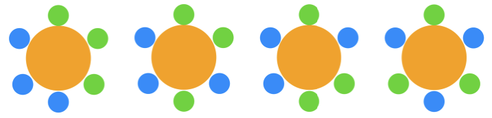 이 두가지 방식은 원탁에 앉아 있는 사람의 입장에서 보면 똑같습니다. 1번은 3번을 마주보고 있고, 왼쪽에는 2번, 오른쪽에는 4번이 있습니다.