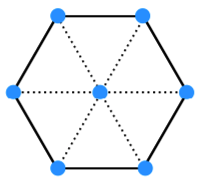 정육각형에 7개의 점을 놓을 수 있는 방법은 많지만 최대한 멀리 놓을 수 있는 방법은 다음과 같습니다.